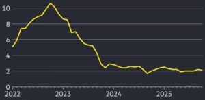 Kamata je poslednji put smanjena na nivo od 2,0 odsto u junu i faktički je prepolovljena nakon što je dostigla 4,0 odsto u sprovođenom oštrom ciklusu podizanja kamata tokom borbe sa inflacijom. Indeks potrošačkih cena u septembru porastao je na 2,2 odsto, što je pripisano rastu cena usluga, te je ECB ostala oprezna oko nastavka smanjivanja cene novca.