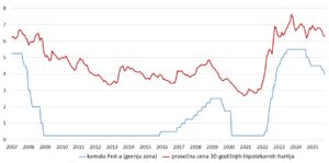 Fed spustio kamate, decembarsko smanjenje neizvesno – Na makroekonomskom nivou u centru pažnje je bilo zasedanje Fed-a koje je očekivano donelo drugo smanjenje kamata zaredom za 25 baznih poena. Fed je spustio kamatu na raspon 3,75-4,00, a takođe i najavio zaustavljanje postupka smanjenja portfelja obveznica koje u aktivi drži ova centralna banka.