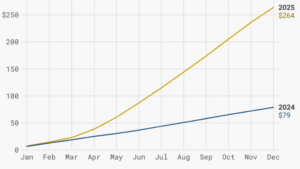Kumulativni mesečni prihodi od carina u SAD (u mlrd USD)