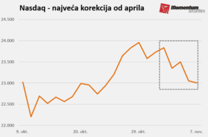 Američko tržište akcija zabeležilo je oštru korekciju protekle sedmice nakon što je intenzivirana zabrinutost ulagača oko vrednovanja pre svega tehnoloških akcija. U oskudici značajnijih makroekonomskih objava, usled nastavka prekida u radu vlade, indeks S&P 500 je izgubio na vrednosti 1,6 odsto, dok je Nasdaq u najvećoj korekciji od aprila oslabio tri procenta.