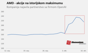 AMD – nova AI zvezda – Sve do turbulentnog petka, trgovačka sedmica je ličila na nekoliko prethodnih. Akcije su beležile nove rekorde, a glavna investiciona tema – primena veštačke inteligencije (AI) – dobila je novi zamah nakon, ovaj put objavljivanjem partnerstva firmi AMD i OpenAI.