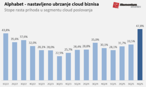 Alphabet u tekućoj godini očekuje kapitalna ulaganja u rasponu 175-185 što je skoro duplo više u odnosu na izdatke po ovom osnovu u prošloj godini. Ova ulaganja biće usmerena na računarske kapacitete veštačke inteligencije (AI) za Google DeepMind i na zadovoljavanje „značajne potražnje kupaca u segmentu cloud usluga, kao i na strateška ulaganja u druge oblasti“.