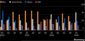 Najveći deo realizacije u periodu januar-mart došao je iz Južne Koreje (45 odsto), pa Tajvana (23 odsto), dok je prodaja u Kini zauzela 19 odsto prihoda. U poslednjem kvartalu prošle godine prihodi sa kineskog tržišta činili su 36 odsto ukupne realizacije.