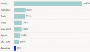 Akcije Amazona na začelju Big Tech-a (rast u poslednjih pet godina)