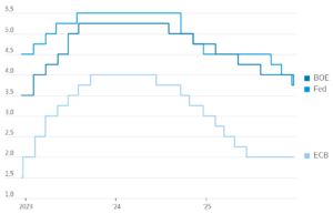 BoE je smanjila ključnu stopu na skoro trogodišnji minimum od 3,75 odsto, ukazujući da će cena zaduživanja verovatno nastaviti ovaj trend, ali da se približava minimumu. Odluka o smanjenju kamate je doneta tesnom većinom nakon što je u novembru stopa zadržana nepromenjenom.