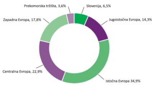 I ostala glavna tržišta beležila su rast: Centralna Evropa 6,8 odsto, Zapadna Evropa 3,0 odsto, Jugoistočna Evropa 8,2 odsto i nacionalno tržište 7,5 odsto. Pad od 2,6 odsto zabeležio je najmanji regionalni segment, prekomorska tržišta, pre svega usled pada prodaje na Bliskom Istoku.