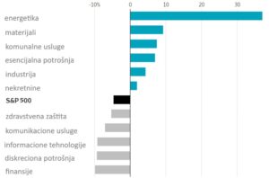 Očekivano, najveći dobitnik je energetski sektor koji je skočio preko 30 procenata, nakon što su cene Brenta i WTI nafte u prvom tromesečju skočile više od 70 procenata. Solidne, natprosečne dobitke u prvom kvartalu ostvarili su sektori materijala, komunalnih usluga i esencijalne potrošnje.