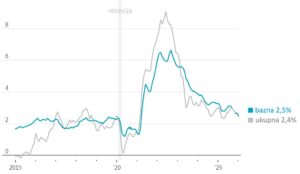 Bazna inflacija, koja isključuje volatilne stavke poput hrane i energenata, porasla je 2,5 odsto godišnje i bila je na liniji očekivanja.