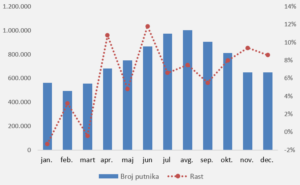 Aerodrom poslednjih meseci beleži visoke jednocifrene stope rasta, a tokom decembra je usluženo oko 648 hiljada putnika što je povećanje od 8,6 odsto na godišnjem nivou.