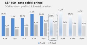 Kada su u pitanju dugoročnija očekivanja u pogledu profita američkih korporacija, kompanije iz indeksne korpe S&P 500 bi ove godine mogle da ostvare stopu rasta profita od oko 14 procenata, da bi u 2027. godini ovaj rast mogao da se ubrza na skoro 17 procenata.