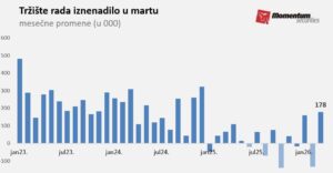 Izveštaj sa tržišta rada budno prati američka centralna banka, Fed, ali teško da bi i veće pogoršanje tržišta rada doprinelo padu kamata s obzirom na vanredne okolnosti u vezi sa ratom na Bliskom istoku i visokim cenama sirove nafte. Tržište trenutno ne očekuje promenu kamate na aprilskom zasedanju, ali vidi nepromenjenu kamatu i do kraja godine sa verovatnoćom od preko 70 procenata.